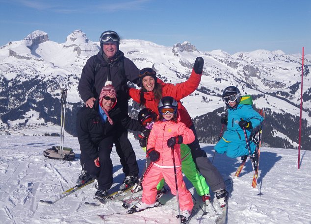 Sloping off: Neil, his girlfriend Isabelle, left, and a group of friends during their stay in Villars